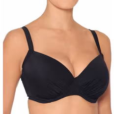 Överdelen bör sitta åt så att du kan bada utan att oroa dig för att den glider upp eller ner. Tänk på att bikinin ofta töjer sig ungefär en halv storlek, så välj hellre den mindre storleken om du är mittemellan två. Däremot får den inte sitta åt för mycket – om den har bygel ska den inte skära in i huden. Du vet att bikinitoppen är för liten om det buktar under kupan eller vid armhålorna.