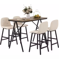 Material: Trä, Linne, Färg: Beige, Egenskaper: Fotstöd, Antal stolar: 4