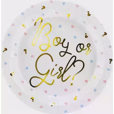 Engångstallrik, Vit, Guld, 6 st, Baby Shower, Högtid: Party, Baby, Födelsedag