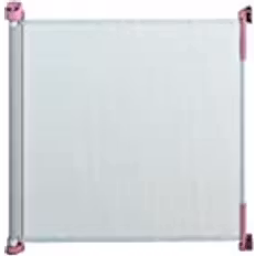Textilgrind. En spänngrind spar plats då den rullas in på ena sidan när den öppnas. Den blir inte heller en snubbelfälla då den saknar ram i nederkant och fungerar därför även i hem med robotdammsugare.