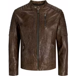 JACK & JONES Jjerichard läderjacka för män Noos läderjacka, Brun sten, XS