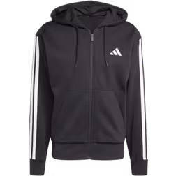 Essentials Fleece 3-Stripes Full-Zip M huvtröja, BLACK/WHITE, Herr, M