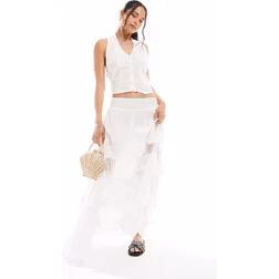 Bershka – Vit maxikjol med volang-Vit/a