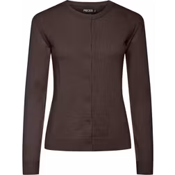 Pieces – Brun, stickad kofta-Brown