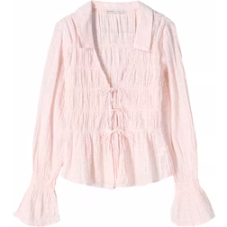 Bershka – Rosa, rustik skjorta med markerad midja