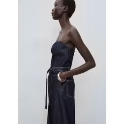 MANGO Strapless Denim Jumpsuit Dam Byxdräkt Stl. S - Open Blue (S)
