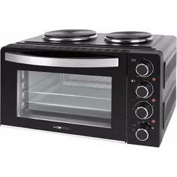 Clatronic® Miniugn med kokplattor och roterande spett | matlagning och bakning samtidigt | miniugn 28 l cirkulationsluft över/undervärme 100°-230 °C | Elektrisk miniugn 3 100 watt inklusive tillbehör
