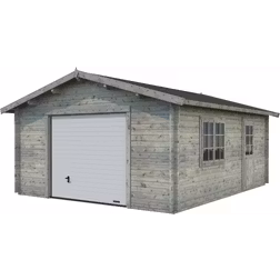 Garage PALMAKO Roger inkl. dörr, fönster, sektionsport 26,8m² (23,9m²) 450x550cm doppimpregnerad ljusgrå