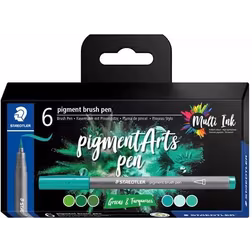 Staedtler Pigment Arts Brush Pen Greens & Turquoises, 6 färger, Grön, Turkos, Rund, Plast, Polypropylen (PP), Vattenbaserat bläck, Vuxna och barn