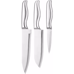 Detta japanska knivset innehåller tre olika knivar, bland annat en kockkniv. Bladen är gjorda av rostfritt stål.