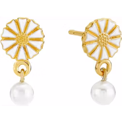 Pärlörhängen, Material: Silver, Emalj, Guldpläterad, 24k, Sten: Pärlor, Stenfärg: Vit