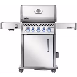Gasolgrill, Grillvagn, Hjul, Skåp/lådor, Varmhållningsyta, Sidobord, Termometer, Lock, Bottenbrännare, Slutet lock