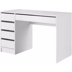 Moon Skrivbord 120 cm med Förvaring 5 Lådor - Vit/Vit Högglans Vit