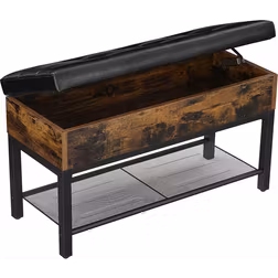 VASAGLE sko förvaringsbänk, vadderad bänk, sovrumspall med hylla, brun och svart