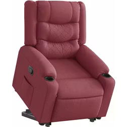 Reclinerfåtölj med uppresningshjälp vinröd tyg
