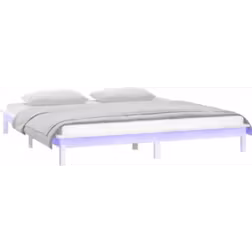 Sängram LED vit 180x200 cm massivt trä