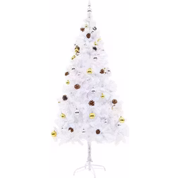 vidaXL Belyst plastgran dekorerad med julkulor grön 180 cm
