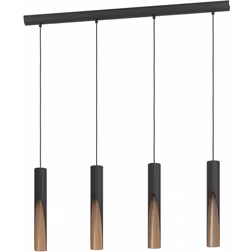 Eglo LED-pendellampa, Barbotto, hänglampa med 3 ljuskällor över matbord, indirekt belysning, hängande lampa av metall i svart och träutseende, hängande lampa med GU10-lampa, varmvit