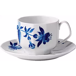Med fat,Säker för mikrovågsugn, Diskmaskinsvänlig, Handmålad, Med handtag, Porslin, Vit, Blå