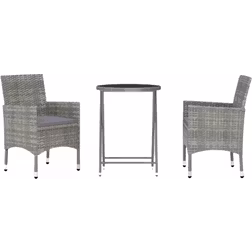 vidaXL Caféset 3 delar konstrotting och härdat glas grå