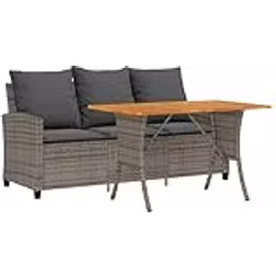 Havesofa vidaxl - Trädgårdssoffa 3 sits med dynor och bord grå konstrotting