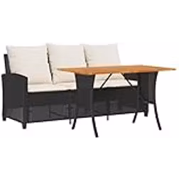 vidaXL Trädgårdssoffa 3-sits med dynor och bord svart konstrotting