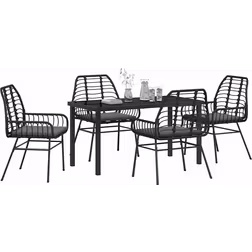 Matbordset vidaxl - 5 delars trädgårds matgrupp med kuddar svart poly rattan 140 x 80 73 cm syntetisk - Svart