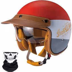 CFZWJ Motorcykel Open Face Hjälm Lätt Mopedhjälm Retro - Justerbart Dam, Vuxen, Herr