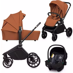 LIONELO Mika Plus 3-i-1 Barnvagn med Liggdel Sittdel & Bilbarnstol i-Size, Terränghjul, Sufflett UPF50+, 5-punkts Bälte, Justerbart Ryggstöd & Fotstöd, Hopfällbar, Upp till 22kg, Inkl Tillbehör, Brun