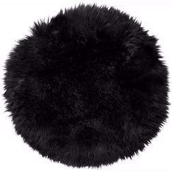 Gently svart - rund stolsdyna i långhårigt fårskinn Rund 34 cm (Rund 34 cm)