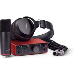 Focusrite Scarlett Solo Studio 4:e gen USB-ljudkort för låtskrivare, gitarrister, vokalister och producenter med kondensatormick och hörlurar för inspelning, låtskrivande, streaming och podd
