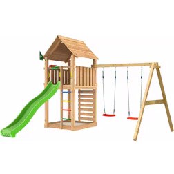 Lektorn Jungle Gym Cabin 2.1 Med Gungmodul Grön Rutschkana & 120Kg Sand