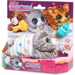 Just Play FurReal interaktiv kattunge, liten interaktiv plyschkatt med ljudeffekter och rörelser, leksaker för barn från 4 år och uppåt