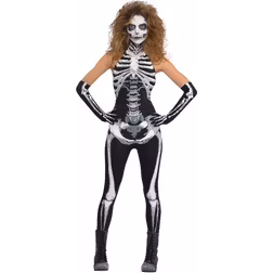 Amscan - Vuxenkostym, skelett body, jumpsuit, overall, handskar, halloween, temafest, karneval