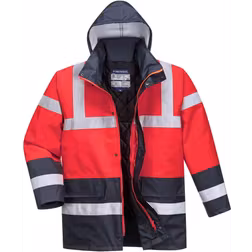Portwest vanntett parkas, Varsel röd/marinblå (S)