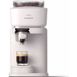 Espressomaskin med kaffekvarn, Droppbricka, 123W, Kapacitet: 1.2 L, Kapacitet (koppar): 1 Koppar, Återanvändbart filter, Färg: Vit